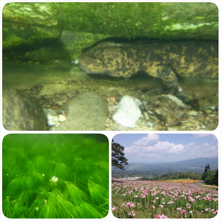 蛍に梅花藻、オオサンショウウオ、ユリの花。