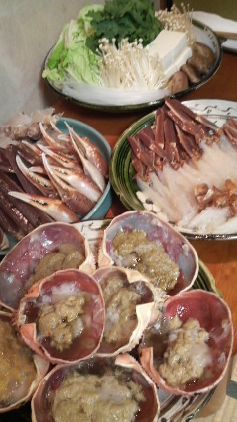 今年も、カニ刺身から焼きカニ、カニしゃぶ、かにみそ、カニすき、カニ雑炊