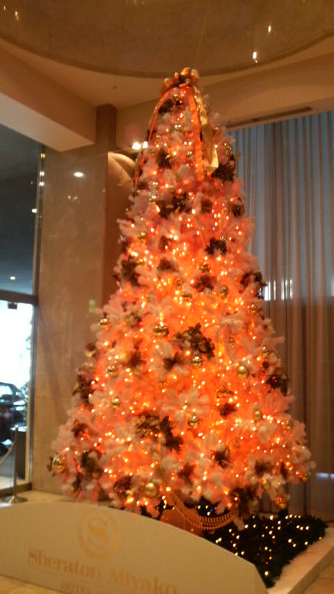 ホテルのロビーに飾られた、何だか暖かみのクリスマスツリー。