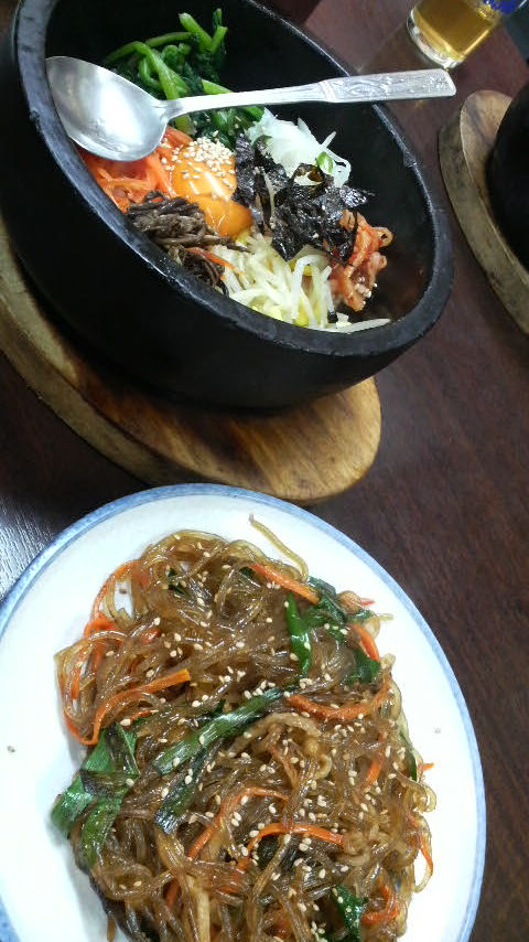 ランチは石焼ビビンバと春雨。トッポギという甘辛い味付けのたれに煮込んだお餅を頂きました。