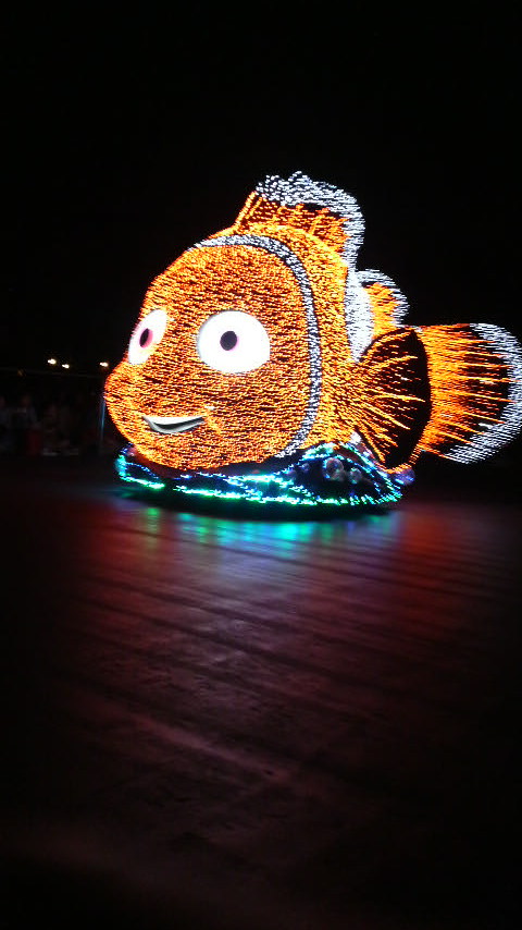 昼と夜のパレードは、頑張って最前列で見る事ができた。ひなこも大喜び!