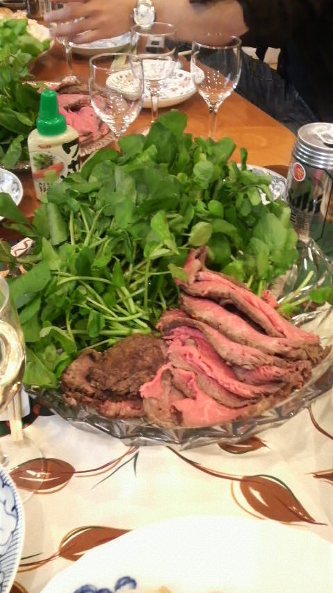 ご隠居のM山氏が東京からローストビーフを焼いて持ってきてくださった。お味はいつもながら最高!