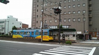 かん袋さんの近くに、路面電車が今も走っています